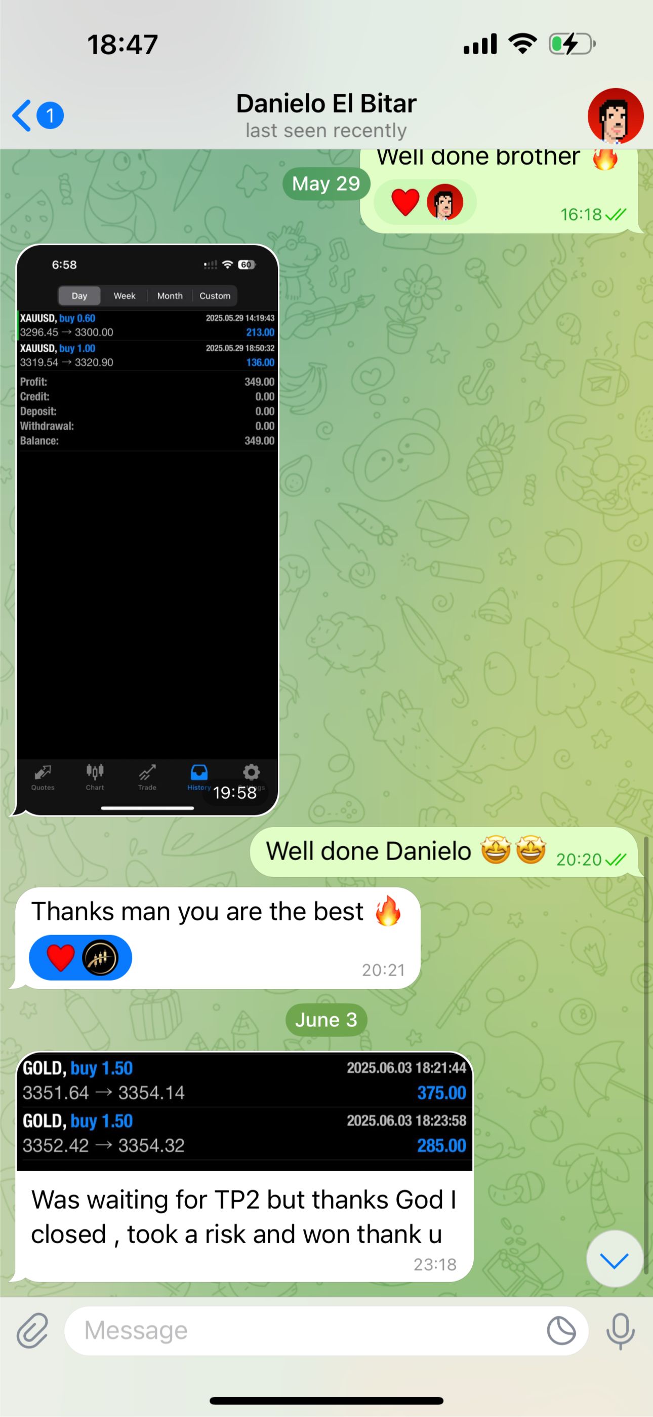 Over 7,000 members from all over the world copy my trades from Monday to Friday where my group and I trade in the financial markets.